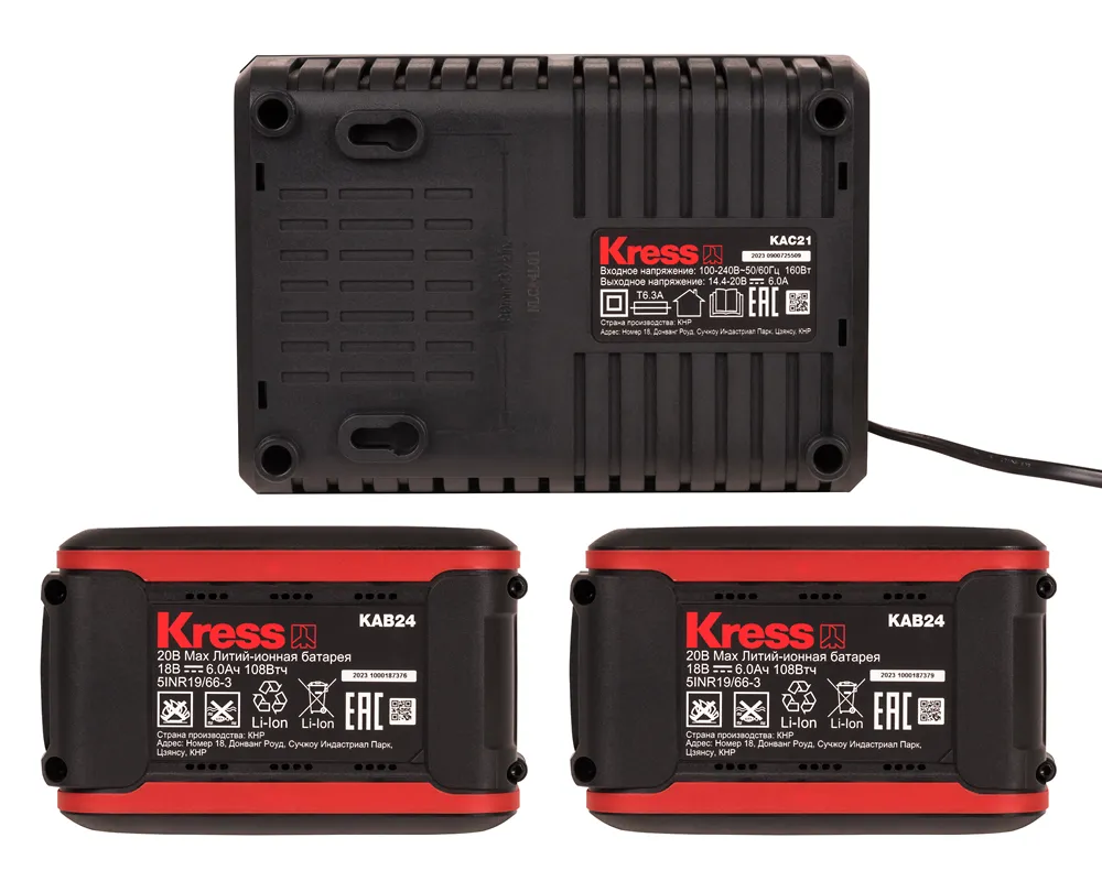 Зарядное устройство KRESS - предназначено для зарядки аккумуляторных батарей KRESS с напряжением 20В.