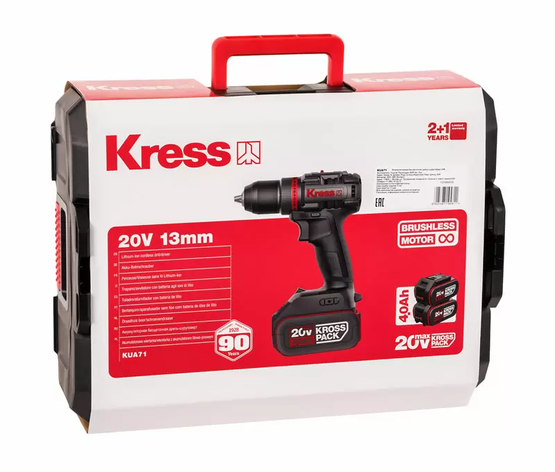- Дрель-шуруповерт аккумуляторная бесщеточная KRESS KUA71- 2 аккумулятора Li-Ion емкостью 4Ач