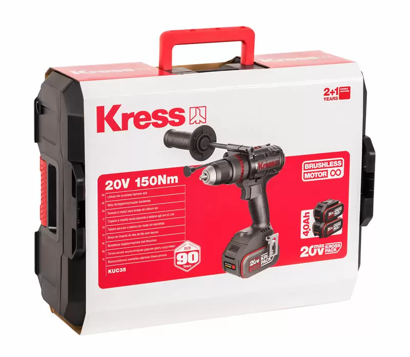- Дрель-шуруповерт аккумуляторная ударная бесщеточная KRESS KUC35.9