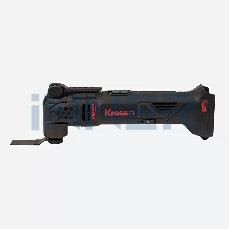 Реноватор оснащен светодиодной подсветкой для удобства работы в условиях недостаточной видимости. Регулировка частоты колебаний позволяет настраивать инструмент для работы с мягкими и твердыми материалами. Реноватор имеет современный бесщеточный двигатель, который получил на 25% больше мощности и увеличил срок службы на 50% в сравнении с щеточными аналогами. Питание устройства осуществляется от универсального аккумулятора KRESS KROSSPACK 20В, совместимого со всеми инструментами производителя в линейке вольтажа и оснащенного электронной платой защиты от перегрева.