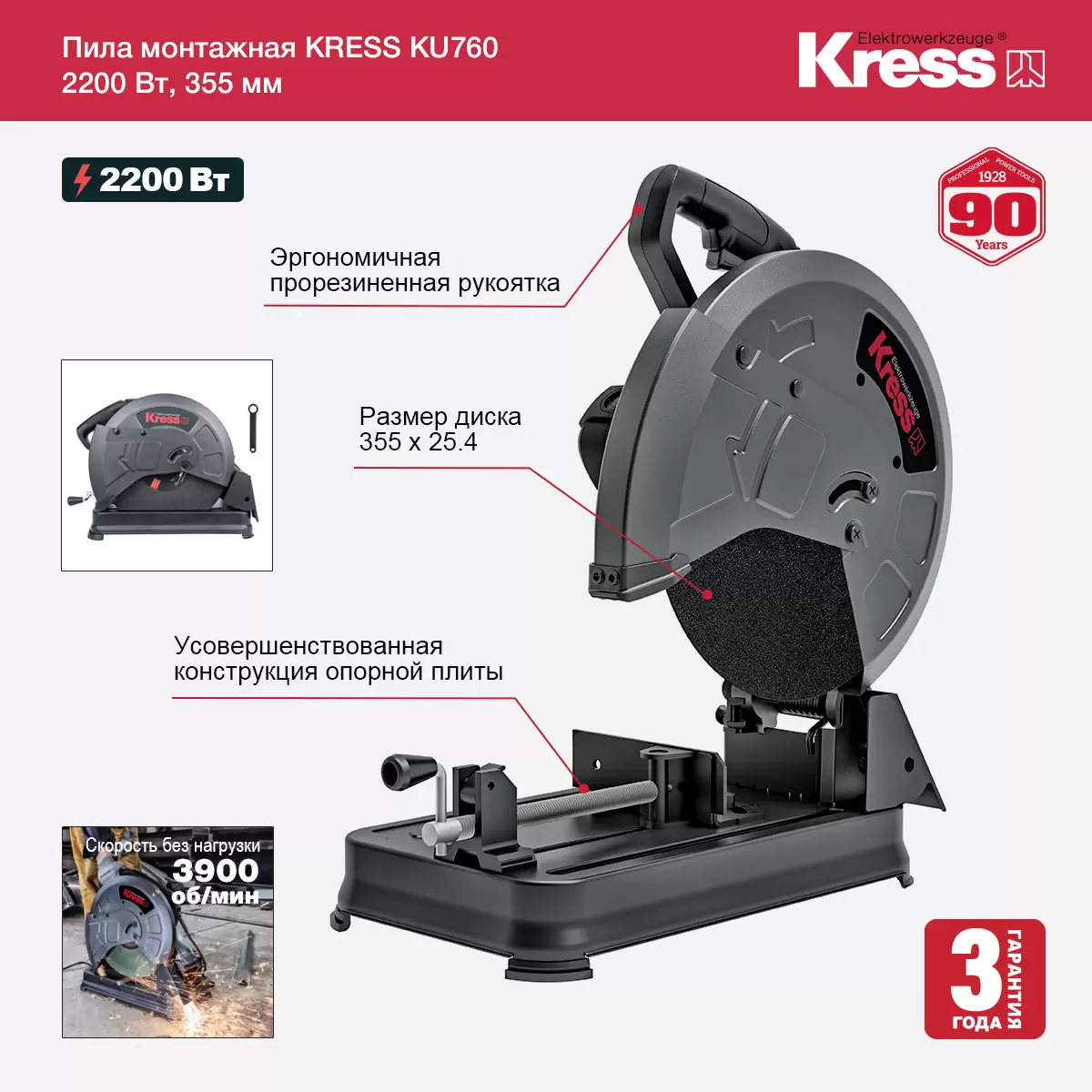 Товар Пила монтажная KRESS KU760 2200Вт, 355мм, коробка