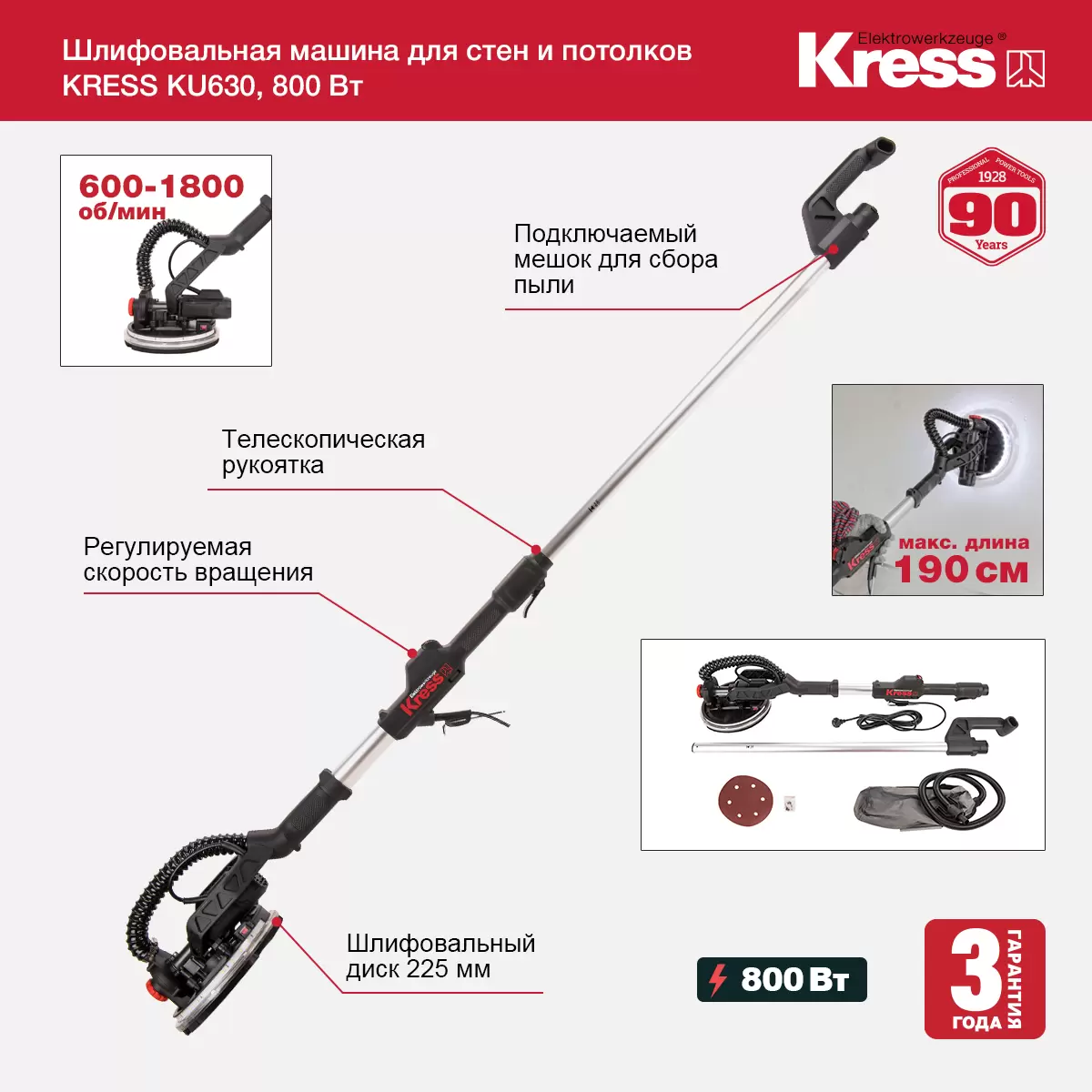 Шлифовальная машина для стен и потолков KU630 800W