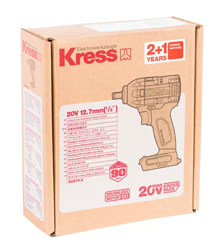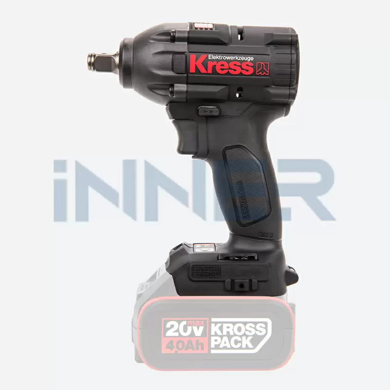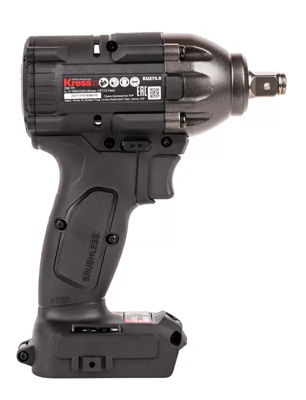 KRESS KU270.9 это компактный и легкий гайковерт c бесщеточным двигателем. Который значительно улучшает характеристики устройства по сравнению с щеточной моделью. А именно благодаря такому типу мотора гайковерт меньше нагревается, работает до 50% дольше и имеет на 25% больше крутящий момент. А самое главное срок службы мотора до 10 раз дольше. Модель оснащена креплением типа "квадрат", размер патрона 1/2 дюйма . А также имеет инновационную систему с 2-мя рабочими режимами скорости с разным максимальным крутящим моментом 180/300 Нм. Гайковерт оснащен светодиодной подсветкой рабочей зоны. Предназначена для работы с аккумуляторами KRESS KROSSPACK® 20В, которые взаимозаменяемы с другими инструментами KRESS 20В.