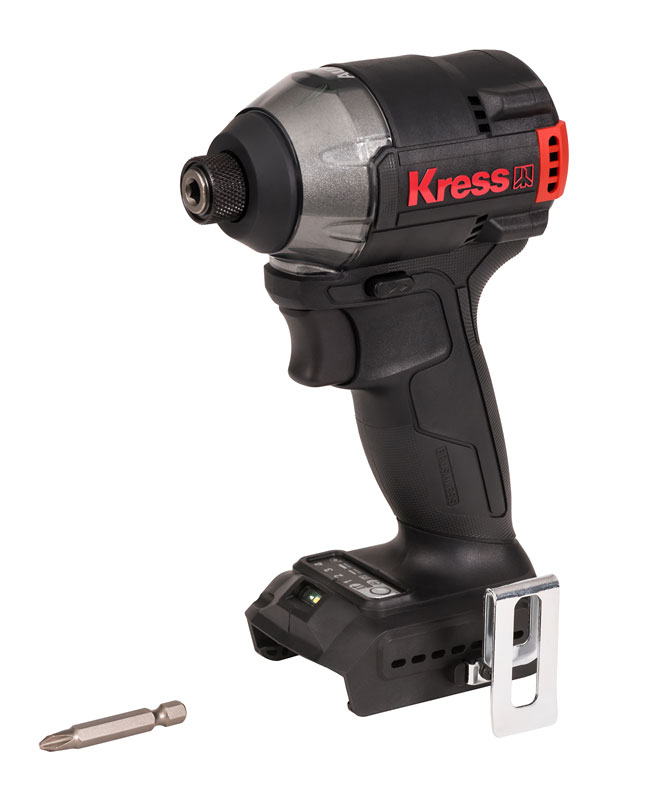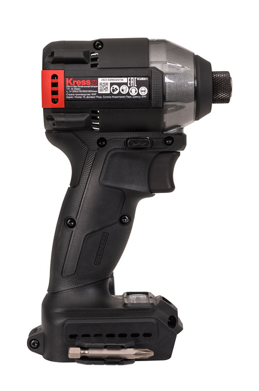 KRESS KUB61.9 это компактный и легкий винтоверт c бесщеточным двигателем, который значительно улучшает характеристики устройства по сравнению с щеточной моделью. А именно благодаря такому типу мотора винтоверт меньше нагревается, работает до 50% дольше и имеет на 25% больше крутящий момент. А самое главное срок службы мотора до 10 раз дольше. Модель оснащена патроном 6.35мм (Hex 1/4 дюйма). Также винтоверт несмотря на компактный размер, обладает крутящим моментом 230 Нм с 3 настройками скорости, обеспечивая скорость 3600 об/мин и частоту ударов до 4200 уд/мин, что делает его более чем подходящим для различных работ по закручиванию и откручиванию. Винтоверт оснащен светодиодной подсветкой рабочей зоны. Предназначен для работы с аккумуляторами KRESS KROSSPACK® 20В, которые взаимозаменяемы с другими инструментами KRESS.