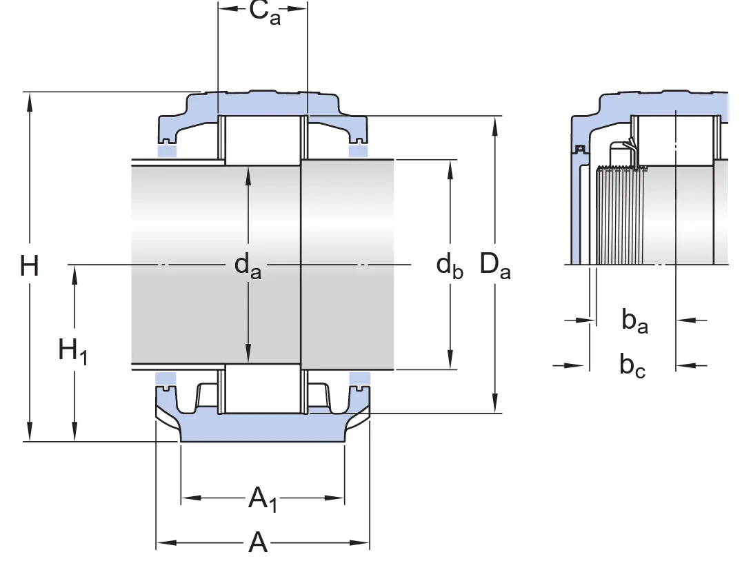 Торцевая крышка для корпусов подшипников SNL: ETS 3034 Лабиринтное уплотнение: 2 x TSN 3034/185 S Стопорная гайка с метрической резьбой со стопорным винтом: KMFE 34Установочное (стабилизирующее) кольцо: 2 x FRB 10/260. Корпус (SNLN 3034) Подшипник (23034-2CS5/VT143) Стопорная гайка (KMFE 34) Установочное кольцо (FRB 10/260).