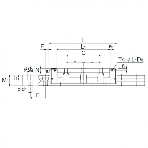 Расстояние от внешнего края каретки до внешнего края рельс (в сборе) N, мм