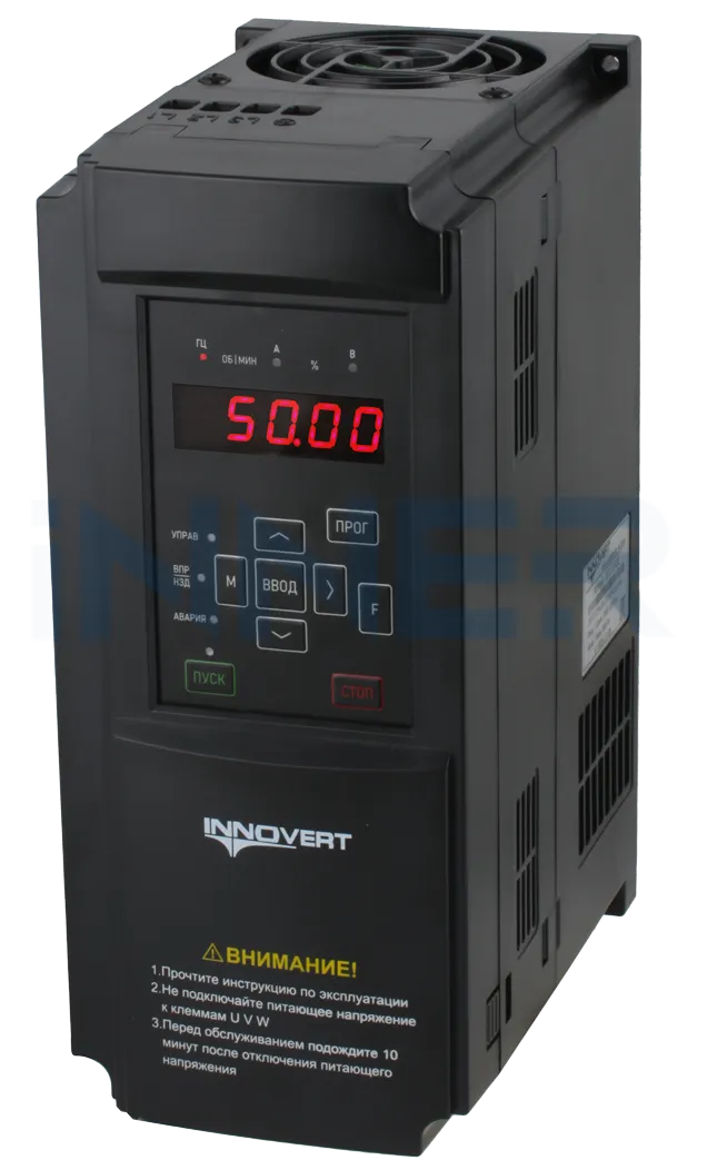 Использование частотных преобразователей INNOVERT IBD позволяет не только обеспечить плавное регулирование скорости оборудования, но и снизить энергопотребление до 30-50%, увеличить срок службы механических узлов, а также оптимизировать технологические процессы за счет автоматизации управления.
