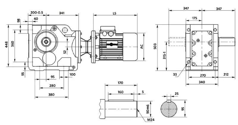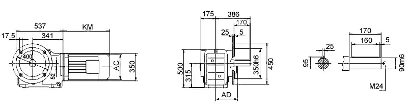 Коническо-цилиндрический мотор-редуктор KTM 63 производится чешской компанией TOS ZNOJMO. В монолитном корпусе агрегата заключены две цилиндрические зубчатые передачи и промежуточная коническая ступень. Мотор-редуктор поставляется с электродвигателем мощностью до 11 кВт. Привод прост в обслуживании, не требует дополнительной смазки в процессе эксплуатации.