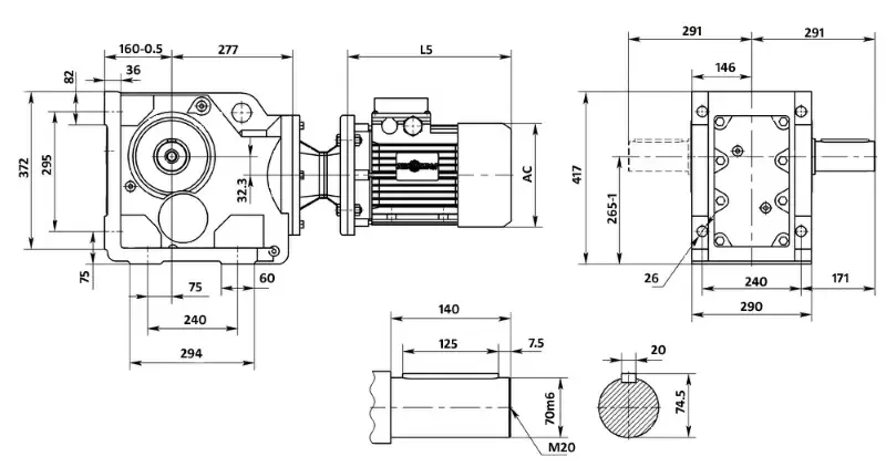 Угловой мотор-редуктор K87 отличается высокой удельной мощностью и надежностью. Агрегат производится на базе трехступенчатого коническо-цилиндрического редуктора и асинхронного электродвигателя ABLE, XINRUI или AИР. Оси входного и выходного валов расположены под прямым углом относительно друг друга. Номинальные передаточные числа: 7,21 — 5240. Крутящий момент — до 2700 Нм. Макс. мощность двигателя — 22 кВт.