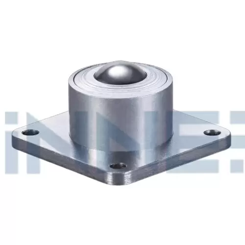 Шариковые опоры средней нагрузки серии MF с нижним фланцем изготовлены из цельной стали с закалкой для износостойкости. Усиленная стальная верхняя крышка защищает от ударов при смещении транспортируемого изделия. Имеет пожизненную смазку и оцинкованное покрытие для защиты от коррозии. Стандартные материалы: корпус и крышка - AISI 1015, шарики - AISI 52100. Версия из нержавеющей стали 'A' и 'SS' имеет шарики AISI420, ударопрочный корпус.