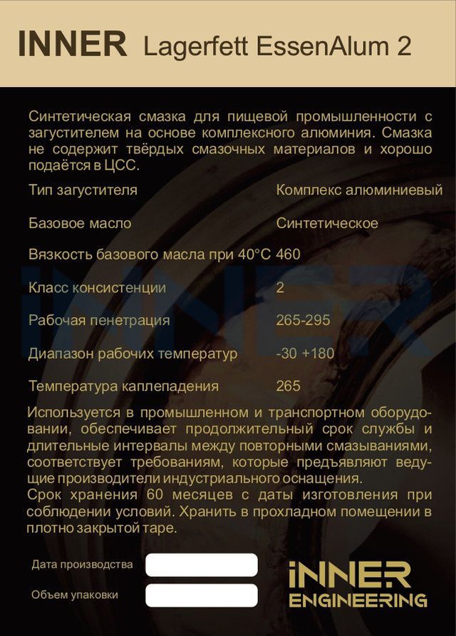 Товар Смазка для пищевой промышленности INNER Lagerfett EssenAlum 2/0,4